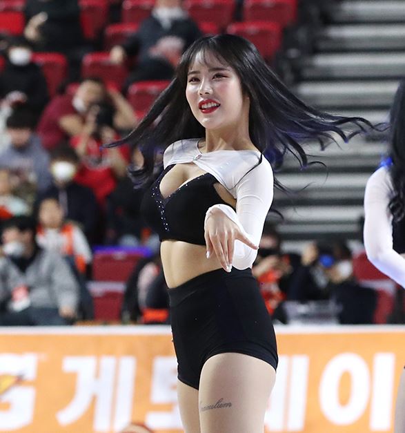 전자랜드 치어리더들이 늘씬한 몸매를 뽐내고 있다.