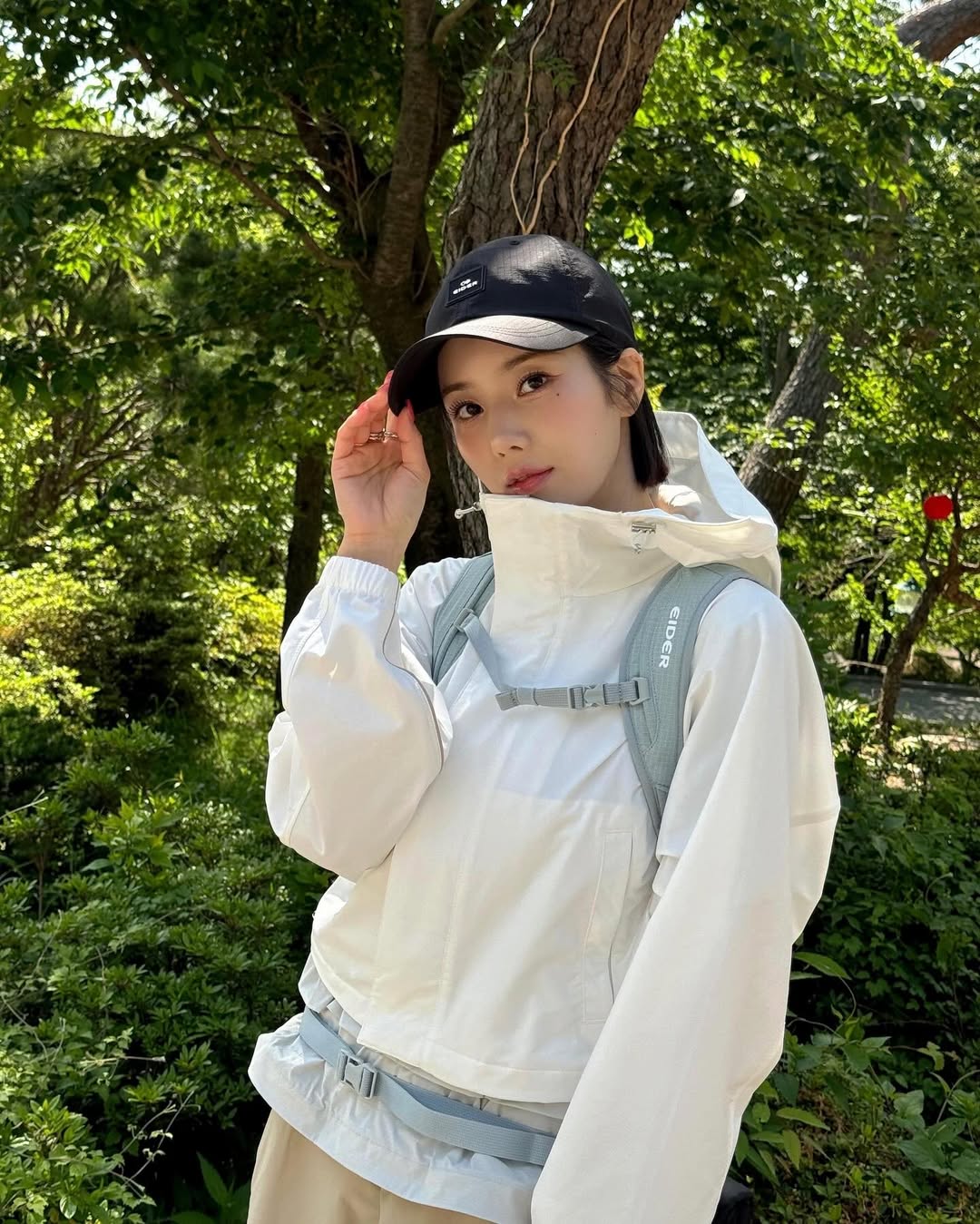 해발 800m 고지를 배경으로 인증샷을 남긴 권은비는 스포티한 등산복 차림에도 여전한 미모를 자랑하며 팬들의 뜨거운 반응을 얻었다.