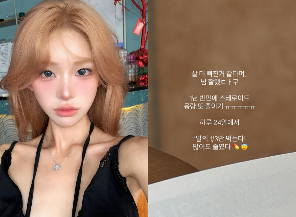 25일 최준희는 자신의 SNS에 처방전 사진과 함께 “1년 반 만에 스테로이드 용량을 또 줄였다.