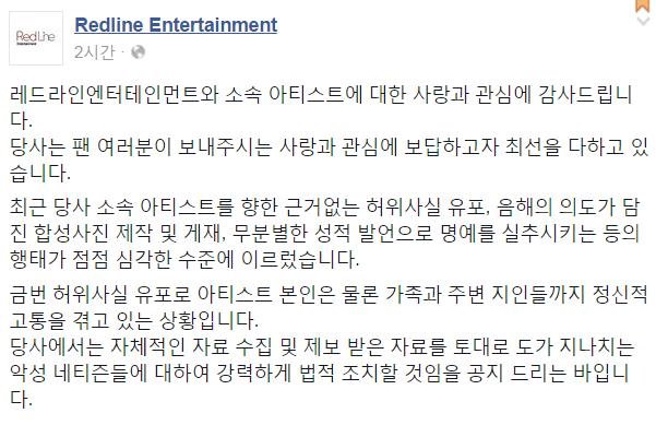 이어 "당사에서는 자체적인 자료 수집 및 제보 받은 자료를 토대로 도가 지나치는 악성 네티즌들에 대하여 강력하게 법적 조치할 것임을 공지드리는 바입니다."라며 법적대응할 의지를 내비쳤다.