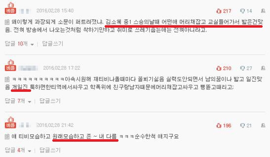 실제로 최근 인터넷 커뮤니티 사이트 및 SNS 등을 통해 일부 누리꾼들이 김소혜 일진설 및 과거 논란 등을 제기한 적이 있다.