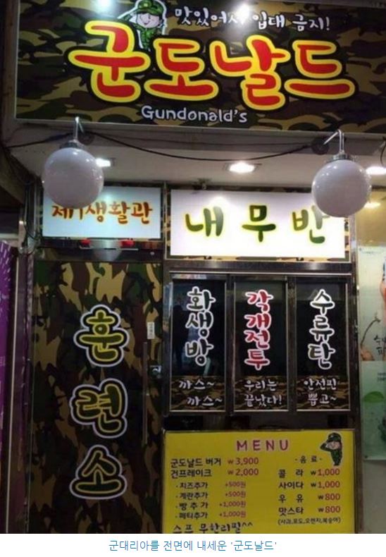 유명 햄버거 브랜드 맥도날드의 이름을 딴 '군도날드'는 실제로 경기도 '안양'에 있는 식당이다. '군도날드'는 군대에서 맛있게 먹었던 음식들을 사회에서는 먹을 수 없어 아쉬워하던 사람들을 겨냥해 군대음식들을 메뉴로 내놓아 사람들의 향수를 자극했다.