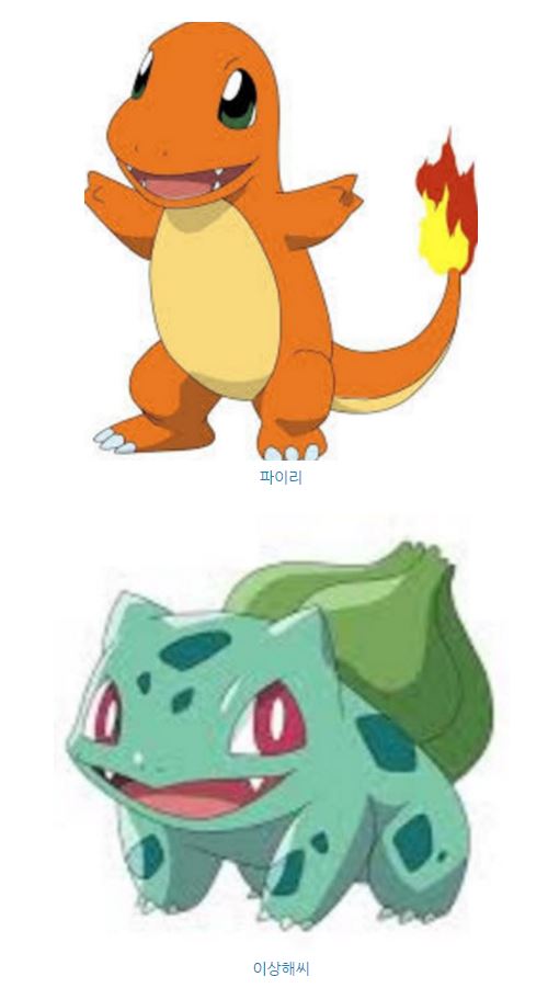 파이리, 이상해씨, 꼬부기는 피카츄와 함께 최고의 인기를 갖고 있는 포켓몬스터이다.