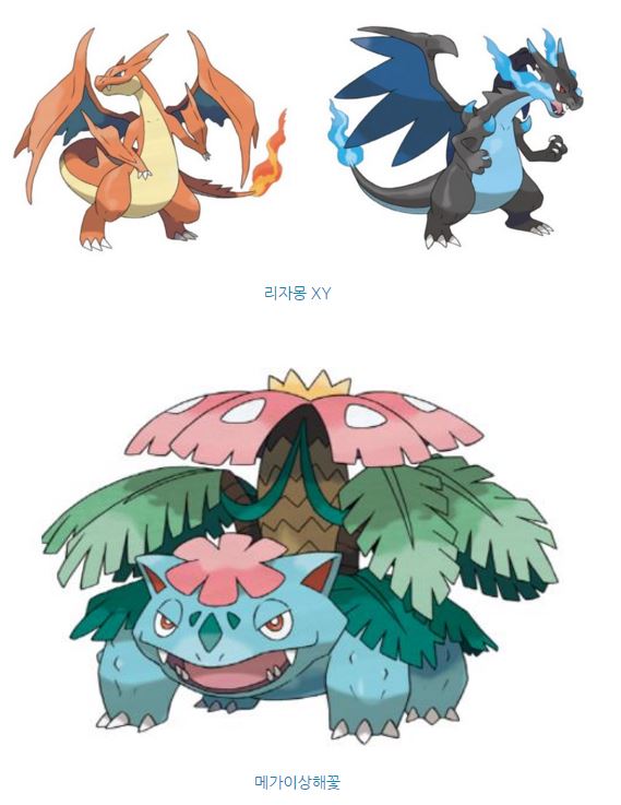 새롭게 등장한 최종진화는 메가 진화로 '메가리자몽XY', '메가이상해꽃', '메가거북왕'이다.