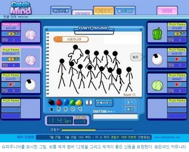 온라인 커뮤니티에서 화제가 되고 있는 이 게임은 '캐치마인드(CatchMind)'라는 넷마블 사의 온라인 게임이다.