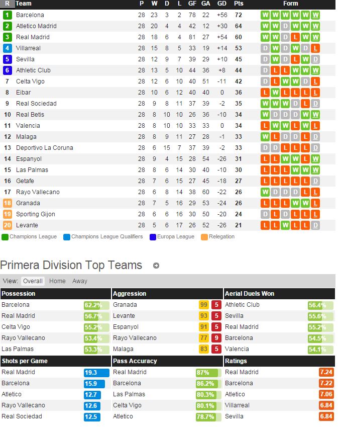AT 마드리드는 지난 라운드 발렌시아 전에서 3-1 승리를 거두고 최근 리그 6경기에서 5승 1무로 좋은 성적을 거두고 있다. 마드리드도 이번 경기보단 다음 주중 아인트호벤과의 챔스 경기에 좀 더 집중 하기 위해 그리즈만 같은 주전 선수에게 휴식을 부여 할 가능성이 있다. 데포르티보는 지난 라운드 말라가 전에서 3-3 무승부를 거두고 최근 리그 12경기에서 승리를 얻지 못하고 있다. 페레즈를 제외 한 공격진의 활약도가 떨어지는 부분이 아쉽다.