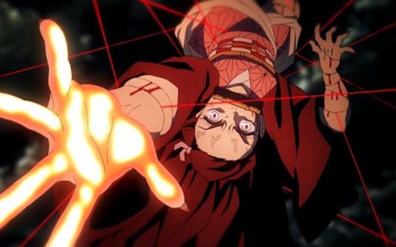 무의식 속에서 어머니의 외침을 듣고 깨어나는 네즈코. 오빠를 구하기 위해 처음으로 혈귀술을 씁니다. 바로 폭혈이죠. 자신의 피를 매개로 불, 화염을 일으키는 혈귀술입니다. 다만 이 불은 인간에겐 해가 없다는 설정으로 오직 혈귀 본체 또는 혈귀가 만들어낸 이형의 물질만을 태웁니다. 십이귀월의 상현도 네즈코의 폭혈에 당하면 쉽게 재생하지 못할 정도로 강력하다고 하네요. 원작에서는 '혈귀만 태운다'라는 특징 때문에 혈귀의 독을 태워서 해독하는 능력까지 선보입니다. 다만 이 '히노카미 카구라' 영상에서 드러났듯 네즈코의 폭혈은 본인의 피를 매개로 합니다. 즉 본인이 피를 흘려야 하기 때문에 적어도 현시점 자주 사용할 수는 없는 혈귀술이죠.