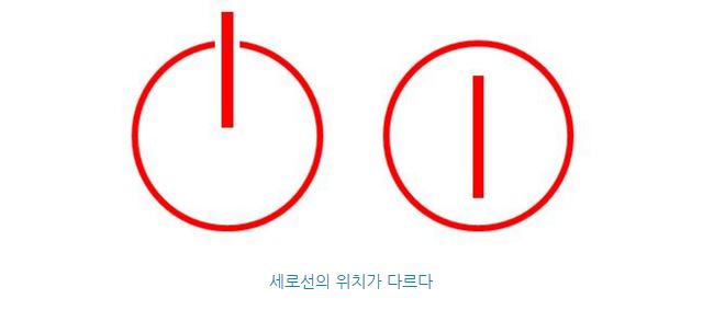 전원 버튼의 모양은 두 가지가 있다. 위 사진만 보더라도 같은 트롬 세탁기임에도 불구하고 전원 버튼의 모양이 다르다. 하나는 세로선이 원 밖으로 빠져나와 있고, 다른 하나는 세로선이 원 안에 들어와 있다. 이 차이는 왜 있는 것일까?
