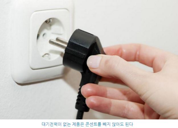 세로선이 원 밖으로 나온 전원버튼을 가진 '대기전력'이 있는 제품은 기기의 전원을 끈 상태에서도 지속적으로 전력을 소모하기 때문에 콘센트를 뽑아두어야 한다. 반면 대기전력이 없는 제품은 전원이 꺼진 상태일 경우 전력 소모가 일어나지 않으므로 콘센트를 뽑거나 멀티탭의 전원 스위치를 끄지 않아도 된다.