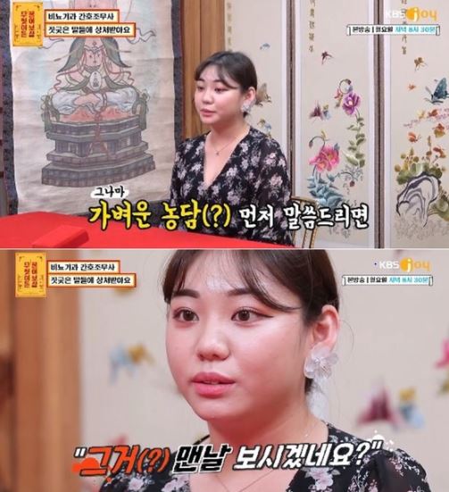 이날 안해미 씨는 보살들에게 "비뇨기과를 다니는데 남자들이 너무 성적으로만 다가온다. 안 좋은 일을 너무 많이 당하고 있다"고 고충을 토로했다.