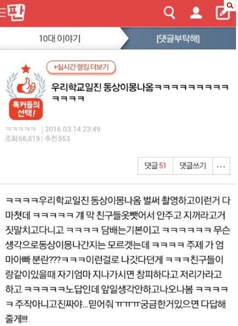 이 게시물을 작성한 누리꾼은 선영 양이 "일진이며 친구들의 옷을 빼앗고 담배를 피는 등 나쁜 행동을 일삼아왔다"고 주장했다.