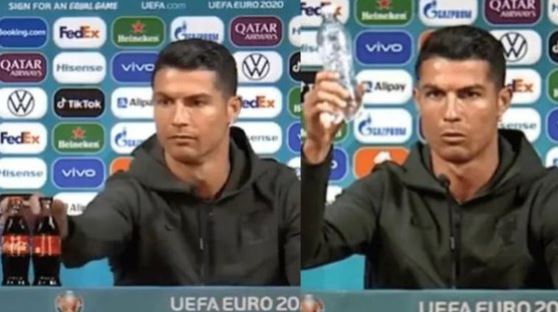 기자회견장에 입장한 호날두는 의자에 앉으면서 자신 앞에 놓인 코카콜라 2병을 옆으로 치웠고 취재진을 향해 "(콜라 대신) 물을 마셔요"라고 말했다. 코카콜라는 유로 2020 대회 공식 후원사로 통상적으로 기자회견 테이블에는 대회 후원사의 음료를 비치한다.