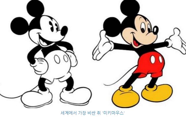 '미키마우스'는 세계적인 애니메이션 회사 월트 디즈니의 마스코트 캐릭터이다. '미키마우스'는 큰 귀에 검은색 몸통을 가진 '쥐'이다. 1928년 처음 등장한 후로 수많은 디즈니 애니메이션에 출연하며 세계에서 제일 유명한 캐릭터가 되었다. 또한 미키마우스는 연간 약 6조원을 벌어들이는 것으로 알려져 있어 세계에서 제일 몸값이 비싼 캐릭터이기도 하다.