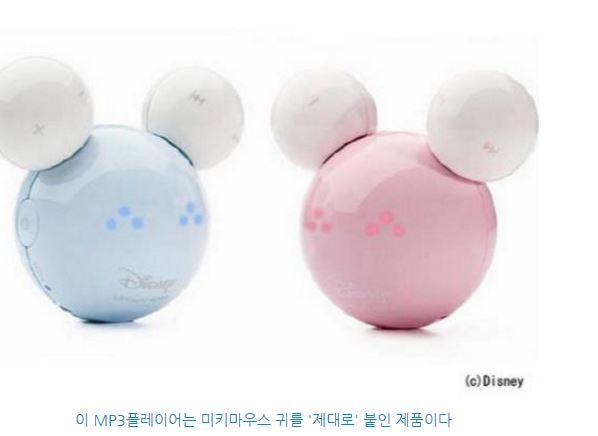 이러한 사실을 증명하듯이 월트디즈니사와 공식 제휴를 맺고 출시된 MP3플레이어를 보면 '귀'의 모양이 '구체'이다.
