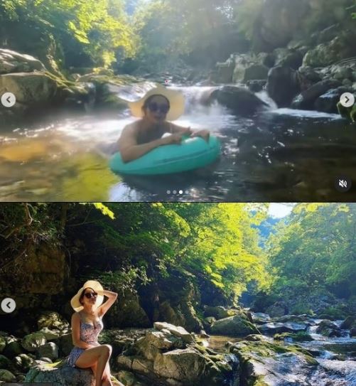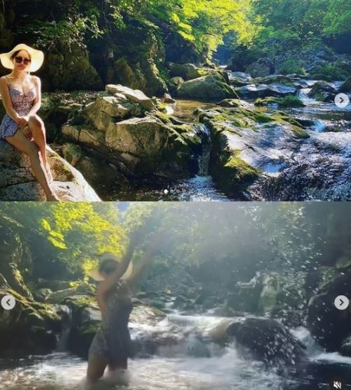미나는 인스타그램에 "강원도 해발 700에 있는 계곡에 캠핑 왔어요"라는 글을 게재했다.