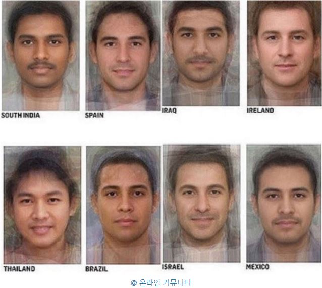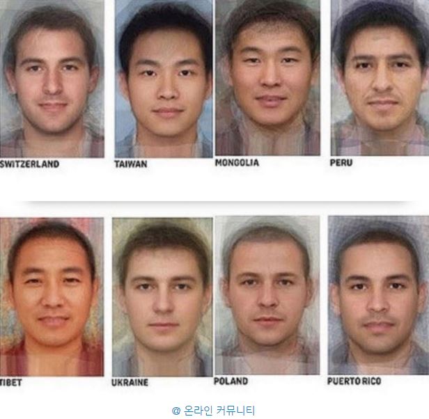 각 나라의 평균 남자 얼굴사진이 누리꾼들의 시선을 끌고 있다.