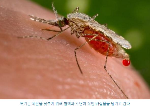 모기는 피만 빠는 것이 아니었다. 모기는 피를 다 빨고 나면 그 자리에 소변을 보고 간다.