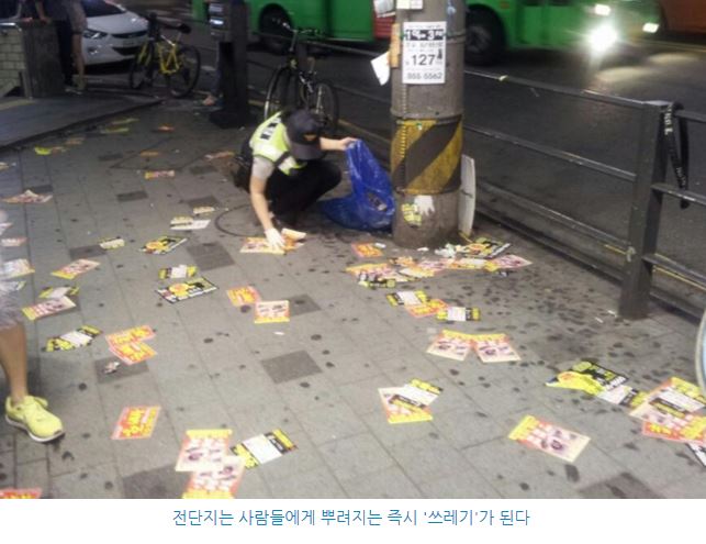 '전단지'는 홍보를 목적으로 만든 낱장의 종이 인쇄물이다. 전단지는 제작자의 입장에서 봤을 때 상품에 대한 정보가 가득 적혀 있는 '유용한' 인쇄물이지만 받는 사람들에게는 '귀찮은' 존재이기도 하다. 이러한 제작자와 수용자의 인식 차이는 전단지를 아주 쓸모 없는 것으로 만든다. 대부분의 사람들이 전단지를 제대로 읽지도 않고 버리기 때문이다.