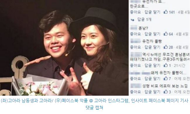 그러나 이 사진을 본 페이스북 사용자 일부는 "어디가 훈남이냐", "유전자 몰빵이다" 등 고아라 남동생에게 악플을 쏟아놓기 시작했다.