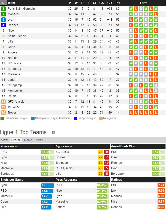 릴은 지난 라운드 낭트 전에서 3-0 완승을 거두고 최근 리그 4연승 행진을 이어가고 있다. 릴은 특히 최근 7경기 중에서 5경기를 무실점으로 이끌만큼 공 수 완벽한 밸런스를 보여주고 있는 상황이다. 모나코는 지난 라운드 보르도 전에서 1-2 예상하지 못한 패배를 당했다. 모나코는 미드필더 툴랄랑-파빈호-레마르 등 핵심 멤버들이 버티고 있지만 확실하게 한 골을 책임 질만한 선수가 없다는 게 아쉽다.
