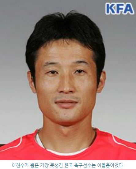 축구선수 출신 방송인 이천수는 세계에서 제일 못생긴 축구선수 2위로 뽑힌 경력이 있는 '못생긴' 축구선수이다. 그렇다면 이천수가 뽑은 가장 못생긴 한국 축구선수 1위는 누구일까?