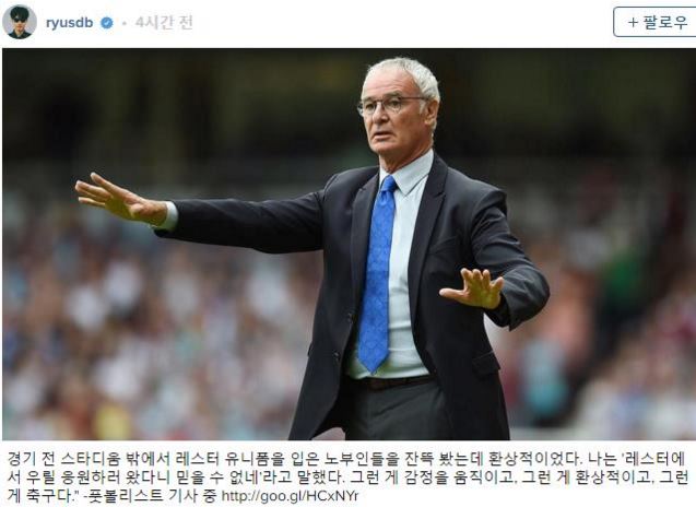 류준열은 4월 11일 자신의 인스타그램에 축구전문 매체에 실린 사진과 기사 일부를 인용해 글을 올렸다.