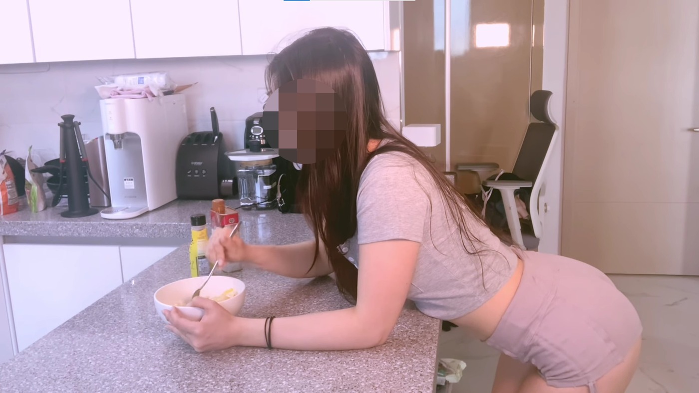 문제는 A씨의 의상이다. 그는 간장계란밥을 먹은 후 운동하는 모습을 담기 위해 주방에서부터 딱 붙는 운동복 차림으로 등장했다. 짧은 상의에 단추를 풀어 가슴이 노출됐고, 하의 역시 엉덩이 라인이 그대로 드러났다.