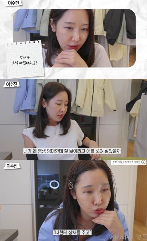 이수진은 "원래 나쁜 것을 빨리 까먹어서 생각 안 하고 있었는데 이상하게 '금쪽상담소'에 나가서 오은영 박사님이 엄마 얘기를 물어보니까 그 말이 툭 튀어나왔다"며 "내면에서 계속 괴롭히고 있었던 것 같다"라고 말했다.