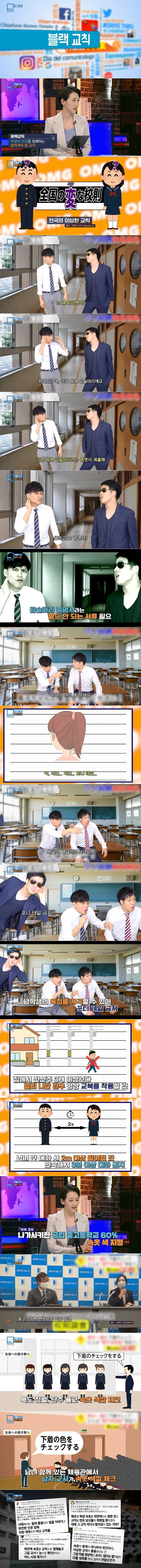 후쿠오카현 변호사회는 관내 중학교 69곳의 교칙을 조사하는 과정에서 불합리한 교칙들을 찾아냈다. 가장 대표적인 것이 바로 속옷 색상이었다. 중학교 중 속옷 색상을 흰색 등 특정 색으로 지정한 사례가 조사 대상의 83%에 해당하는 57개인 것으로 드러났다. 뿐만 아니라 특정 머리 모양을 금지한 학교는 62곳이고 눈썹 다듬기를 금지한 학교도 56곳이었다.