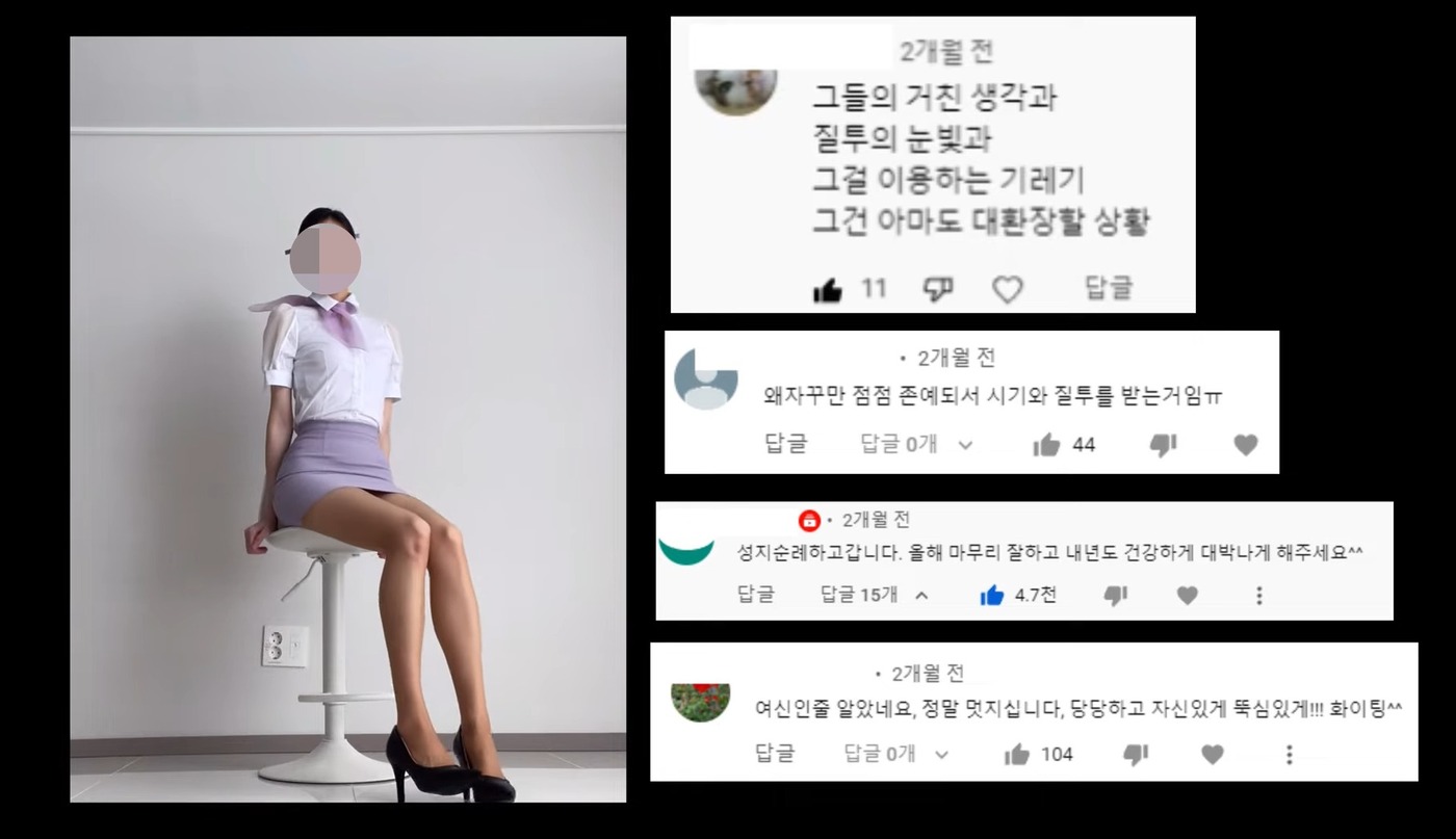 지난 16일 유튜버 A씨는 자신의 유튜브 채널에 '승무원 룩북' 영상에 달렸던 댓글을 모아 편집한 영상을 공개했다.