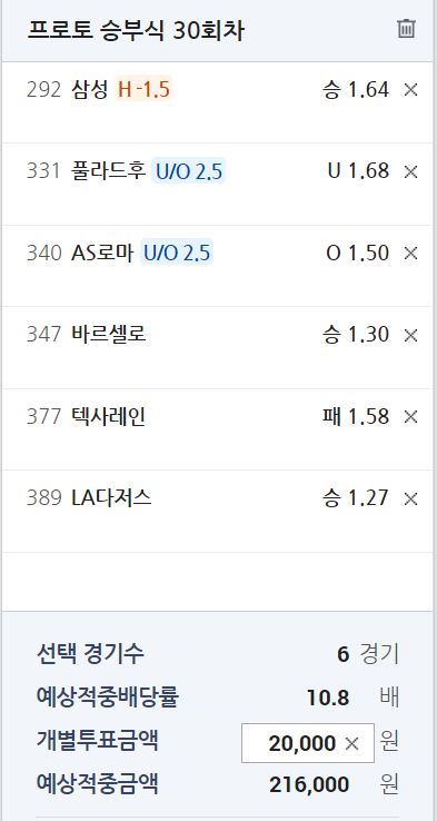 * 전혀 예상하지 못했던 오답이다. 물론 프랑크푸르트가 원정 경기에서 특히 강한 팀이라고 하지만 바르셀로나의 홈 강세를 좀 더 주목해야 할 것으로 판단한 경기였다. 사실상 축으로까지 생각했던 경기이기에 타격이 컸던 경기다. 만약 배당을 고려했다면 오버 픽이 더 나은 선택일 수도 있었다.