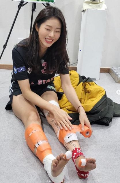 이어 다른 사진에서 서동주는 테이핑 투혼을 보여주는 모습으로도 눈길을 끈다. 그는 테이핑을 하면서도 환한 웃음을 짓고 있어 축구에 대한 남다른 열정을 실감하게 한다.