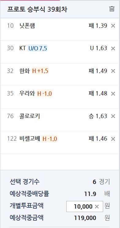 비셀 고베 vs 사간 도스 2.28-3.00-2.75 일 때 2승 1무 2패// 프로토 기준으로 -1.0핸패 기대 확률 60.27%