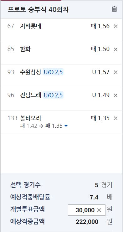* 2022년 접어들어서 현재 배당일 때 정배를 받은 팀이 2전 전승을 기록했고, 최근 삼성의 타격 페이스가 매우 좋았다는 점을 주목해서 선택한 경기였다. 하지만 상승세가 너무 길어지는 팀은 베팅할 때 항상 경계를 했어야 했다