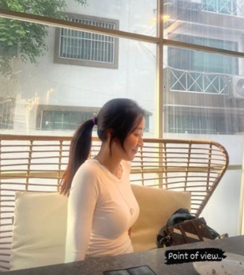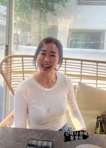 공개된 사진 속 김경화는 카페에 앉아 상체의 라인이 고스란히 보이는 티셔츠를 입고 여유로운 표정으로 포즈를 취하고 있다.