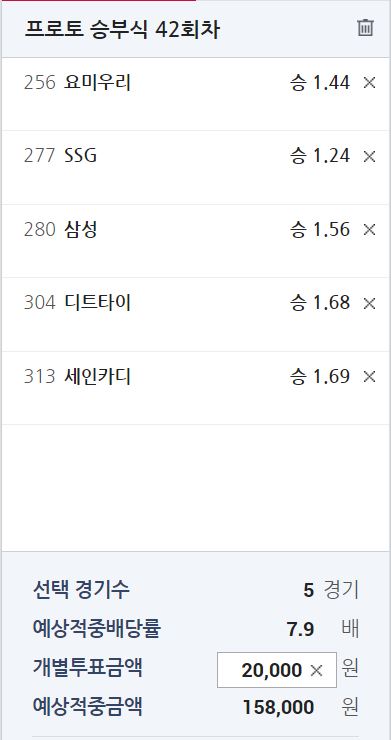 요미우리 vs 오릭스 1.44-2.26 NPB 기준으로 5승 1패// 프로토 기준 요미우리 승리 기대 확률 61.11%