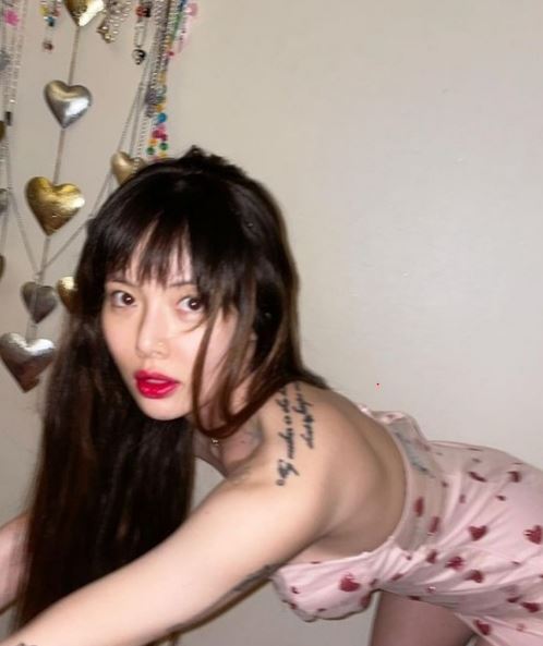 현아는 5일 사회관계망서비스(SNS) 계정에 핑크색 미니 원피스를 입은 사진을 공개해 팬들의 관심을 끌었다.