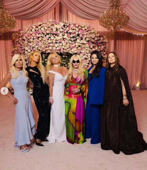 마돈나는 트로피칼한 무늬가 돋보이는 랩 드레스와 망사 스타킹을 하객 룩으로 택했다. 여러 하객들이 함께 찍은 마지막 사진에는 패리스 힐튼과 마돈나, 셀레나 고메즈, 드류 베리모어 등 유명인들의 모습이 보인다.