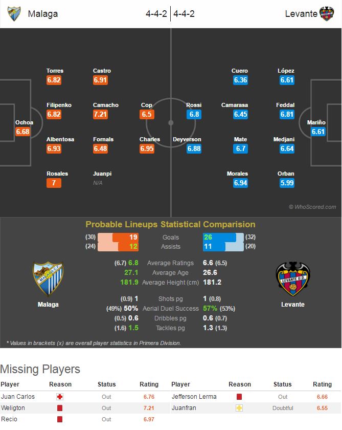 여러모로 말라가에게 부담스런 경기가 될 것 같다. 말라가는 지난 AT마드리드전에서 0-1로 패했다. 최근 5경기에서 3무2패로 승리가 없다. 감독 교체 뒤 끈끈했던 수비도 최근에는 다른 얘기가 됐다. 팀내 공헌도가 높은 MF 웰링턴, 레시우 2명이 징계로 결장한다. 레반테는 갈 길이 급하다. 현재 라리가 최하위로 강등 가능성이 높다. 최근 5경기에서 1승2무2패로 그런대로 선전하고 있는데 지난 주말에는 빌바오를 상대로 2-2로 비겼다. 경험이 풍부한 FW 로시와 올시즌 에이스로 떠오른 FW 데이버슨이 모두 정상 기능한다.