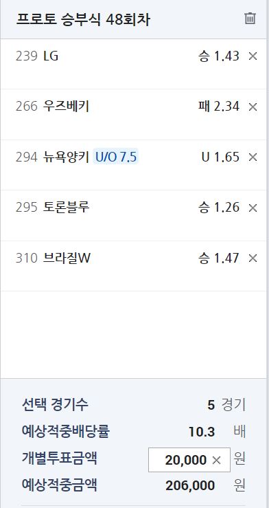 LG vs 삼성 1.43-2.36 일 때 4승 1패// 프로토 기준 LG 승리 기대 확률 61.54% - 적중 실패