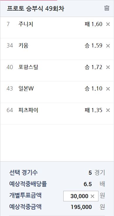 주니치 vs 요미우리 2.01-1.60 일 때 0승 3패// 프로토 기준 요미우리 승리 기대 확률 55%