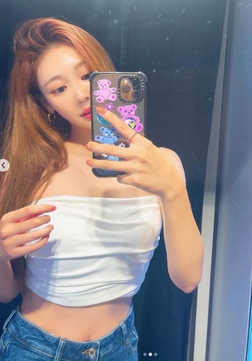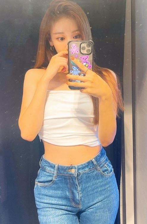 공개된 사진 속 박지영 아나운서가 복근이 노출된 튜브톱 상의를 입고, 청바지로 매칭한 채 거울 셀카를 남기고 있다.