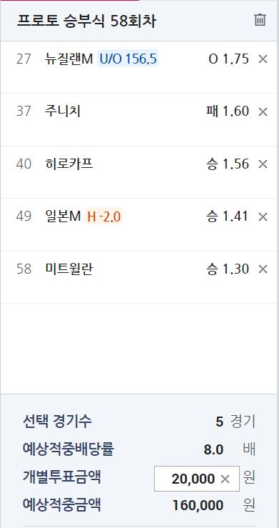 뉴질랜드 vs 시리아 1.01-7.49 일 때 22승 3패// 프로토 기준 오버 기대 확률 50.86% - 적중 실패