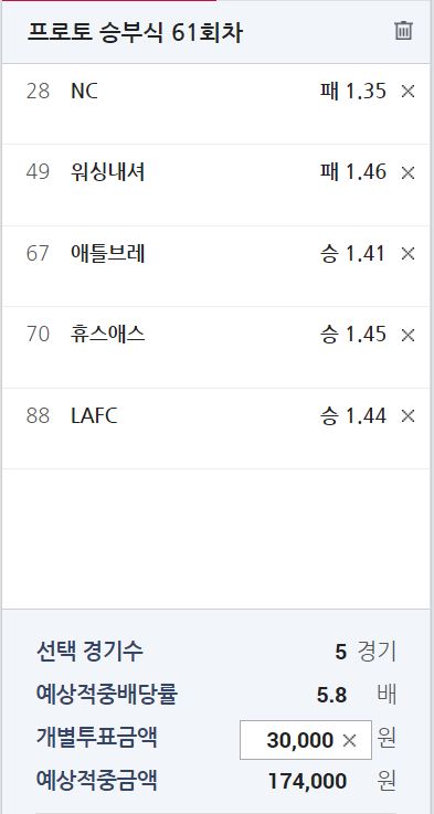 LA FC vs 시애틀 1.44-4.00-5.20 일 때 기록 없음// 프로토 기준 LA FC 승리 기대 확률 61.81%