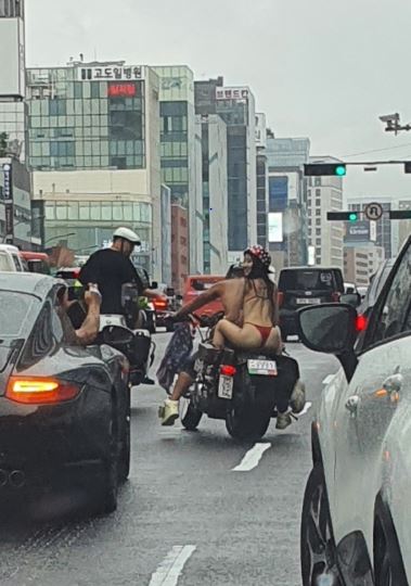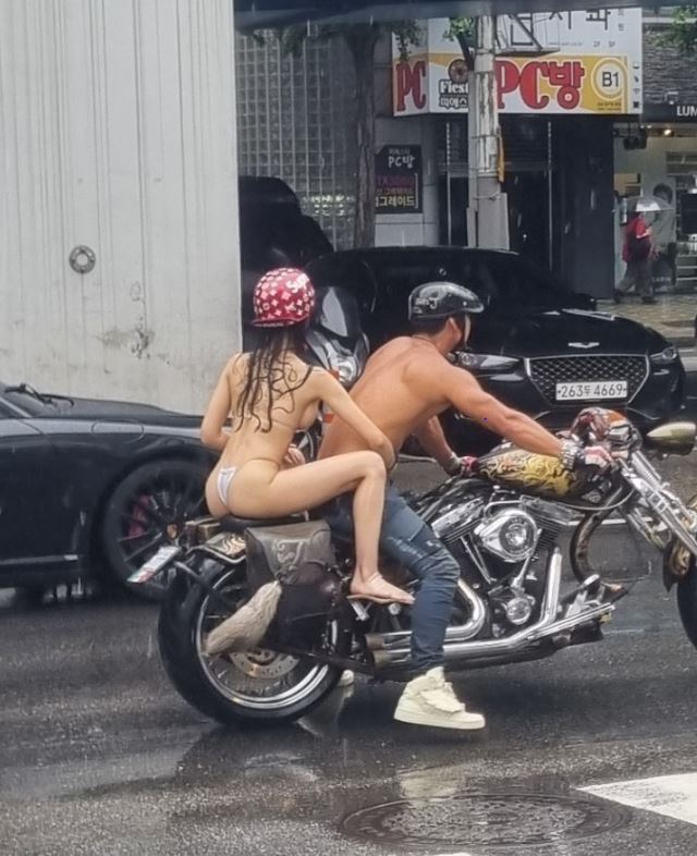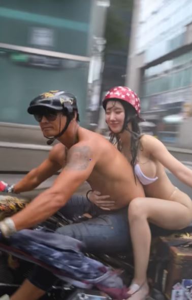 당시 A씨는 상의를 탈의한 상태였고, B씨는 소위 '끈 비키니'라 불리는 노출도가 높은 수영복을 입고 있었다. 둘 모두 머리만 가리는 반헬멧을 착용한 상태였다. 촬영팀까지 동반해 자신이 오토바이를 모는 모습을 찍은 A씨는 해당 영상을 유튜브에 올리기도 했다.