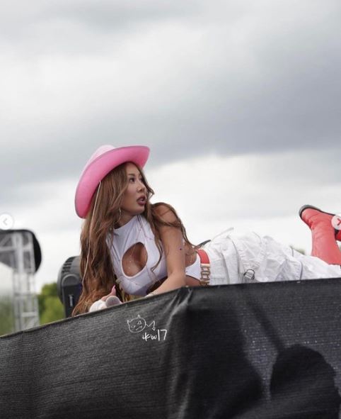 가수 제시가 영국 런던에서 열린 케이팝 공연에서 파격적인 언더붑 패션을 선보였다.