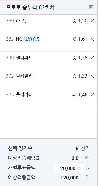 프로토 63회차 목요일 조합