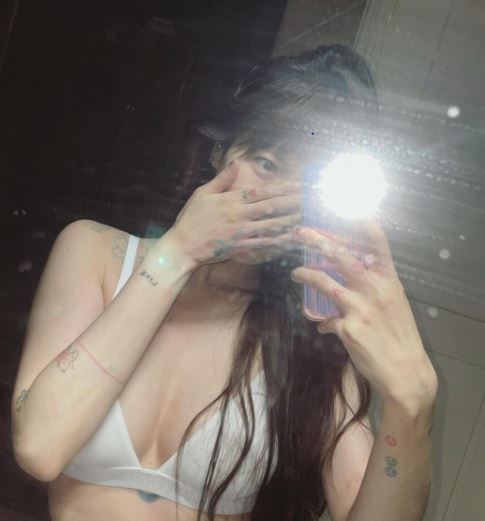 사진 속 현아는 속옷만 입은 채 거울을 통해 자신의 모습을 찍고 있다. 볼륨감 있는 몸매와 더불어 몸 곳곳에 있는 타투(문신)가 눈길을 사로잡는다.