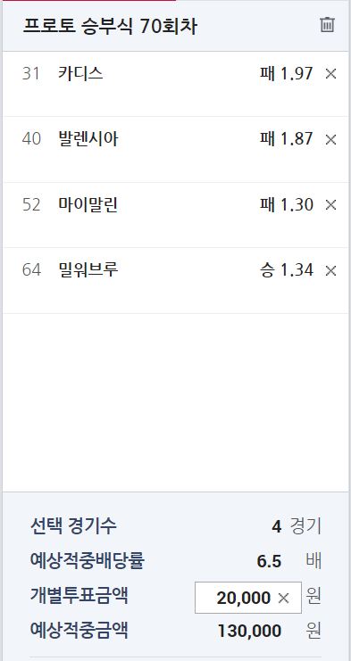 밀워키 vs 피츠버그 1.34-2.65 일 때 13승 8패// 프로토 기준 밀워키 승리 기대 확률 66.42% - 적중