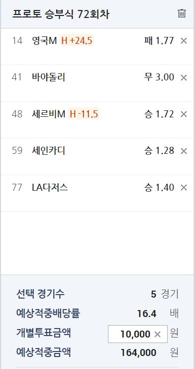 세르비아 vs 핀란드 1.04-5.72 일 때 5승 0패// 프로토 기준 -11.5핸승 기대 확률 51.74%